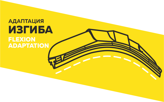 Гибридный тип конструкции позволяет щетке адаптироваться под изгиб любого лобового стекла